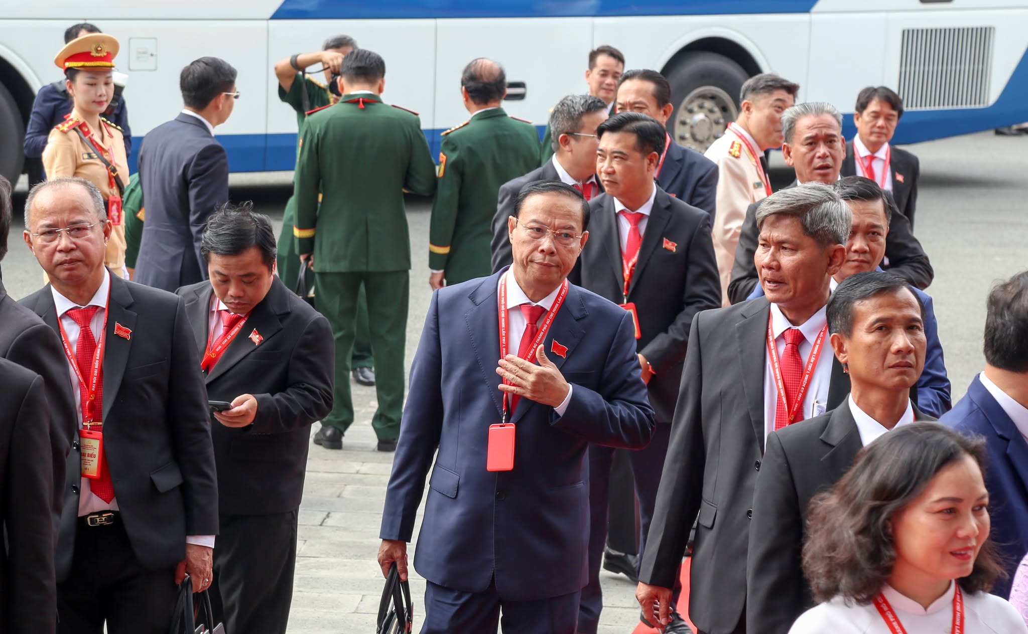 Bí thư Thành ủy TP.HCM Trần Lưu Quang đến dự đại hội trù bị sáng 13-10 - Ảnh: HỮU HẠNH